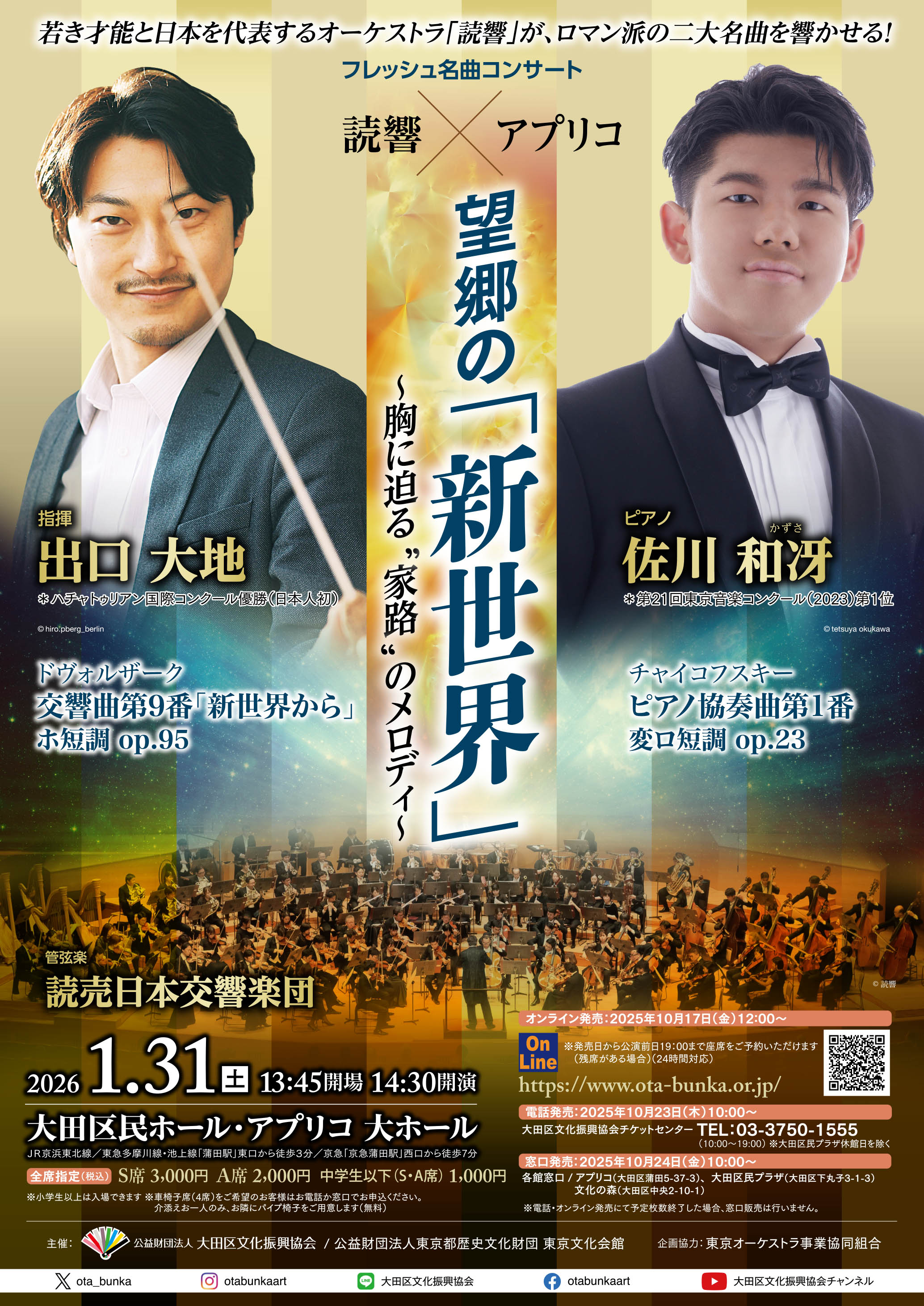 আন্তর্জাতিক খাচাতুরিয়ান প্রতিযোগিতায় জয়ী তরুণ কন্ডাক্টর দাইচি দেগুচি এবং ২০২৩ সালের টোকিও সঙ্গীত প্রতিযোগিতায় প্রথম স্থান অধিকারী পিয়ানোবাদক কাজুসে সাগাওয়া জাপানের শীর্ষস্থানীয় অর্কেস্ট্রা, ইয়োমিউরি নিপ্পন সিম্ফনি অর্কেস্ট্রার সাথে পরিবেশনা করবেন। চাইকোভস্কি এবং ডভোরাকের মহিমান্বিত এবং সুরেলা পরিবেশনা উপভোগ করুন।